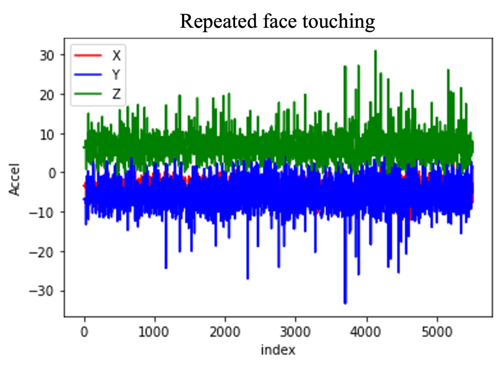 Based on the collected accelerometer data, we used dynamic time warping (DTW) and Machine Learning (ML) methods (Logistic Regression, SVM, Decision Tree, and Random Forest) to distinguish between the two groups of activities (i.e., face-touching and non-face-touching). For our analysis, the INIT Lab focused on using DTW, which is a method well-suited for small datasets, while the GeronTechnology Lab focused on using ML methods. Interested readers can find the details of our collaborator’s analysis in the paper published in the Sensors journal.